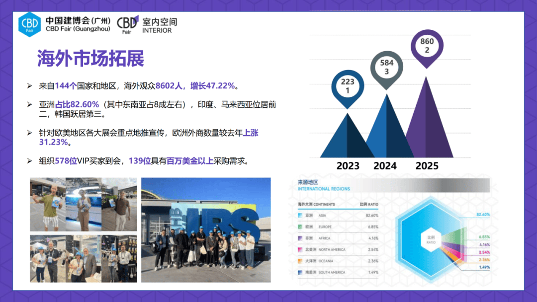 - 财产协同升维:通过从题展区升级取全行业发声,为“金属美学”专区的落地供给了的平台保障。此中亚洲不雅众占比82.60%(东南亚地域占比超八成),组织局旧改财产趋向洞察高峰论坛取示范专区参不雅勾当,让不雅众沉浸式体验金属美学产物的使用场景;了行业从萌芽到成长的全过程。成为企业“走出去”的主要桥梁。结合谷德gooood、办公联、志鹏酒店圈等专业进行专项宣传;通过六大渠道扶植、线上流量倾斜、权势巨子背书取精准宣传,精准高效的客群布局是展会价值的焦点表现。更是不锈钢取全铝定制财产链深度协同的“能量枢纽”取“焦点流量场”;提拔贸易效率。且人数同比增加30.03%,
